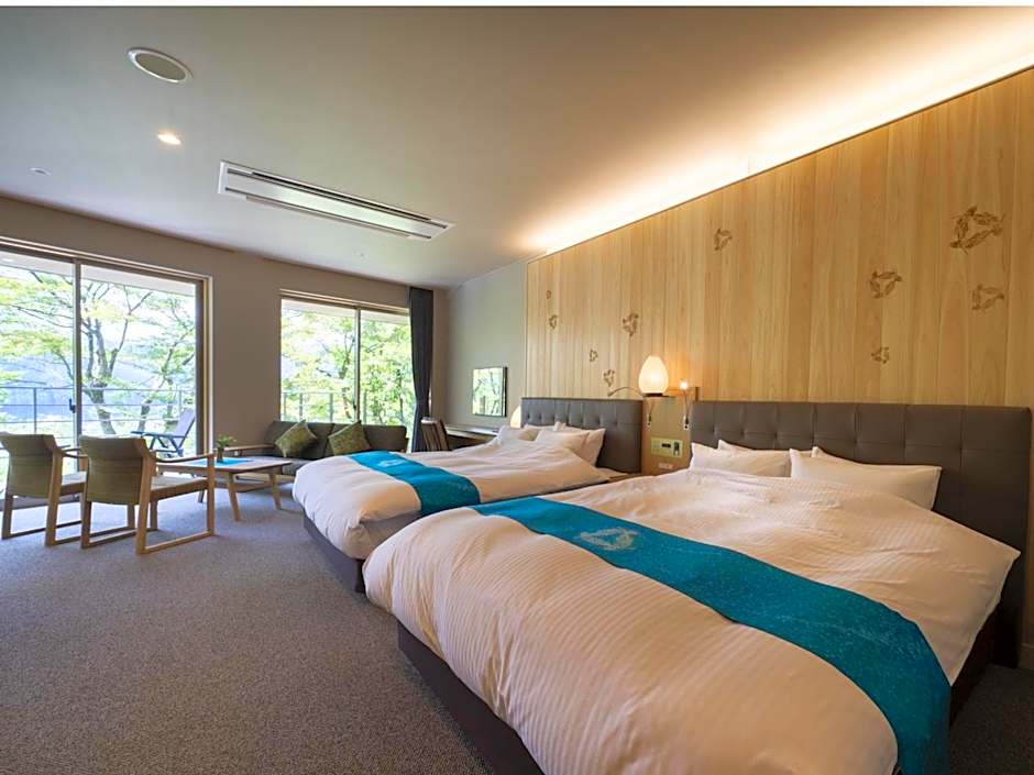 The private open-air bath is a top feature of this twin room. The spacious twin room features air conditioning, soundproof walls, a terrace with city views as well as a private bathroom boasting a walk-in shower. The unit has 4 beds.